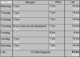 Siden efterårsferien 2012 har jeg tilføjet 3-4 morgentræningspas med min søn Jonatan. Samlet træningsmængde er nu 80-90 km på 9-12 træningspas.